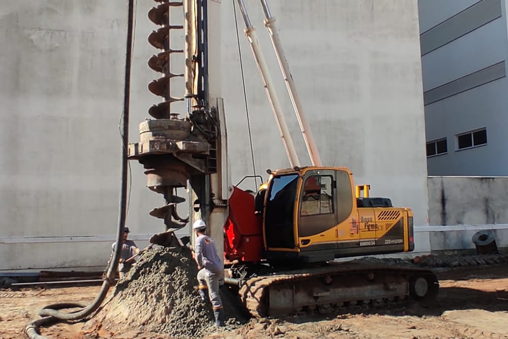 Equipamento de hélice continua monitorada com capacidade de perfuração até 24 metros. Trabalha com diâmetros que variam de 300mm à 800mm.