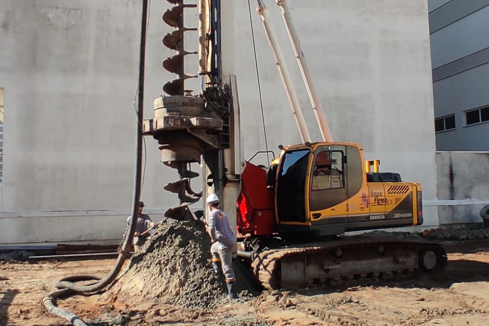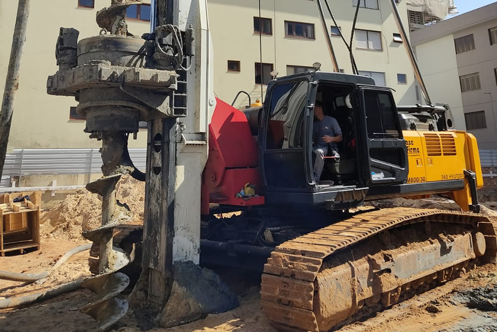 Equipamento de hélice continua monitorada com capacidade de perfuração até 30 metros. trabalha com diâmetros que variam de 300mm à 800mm.