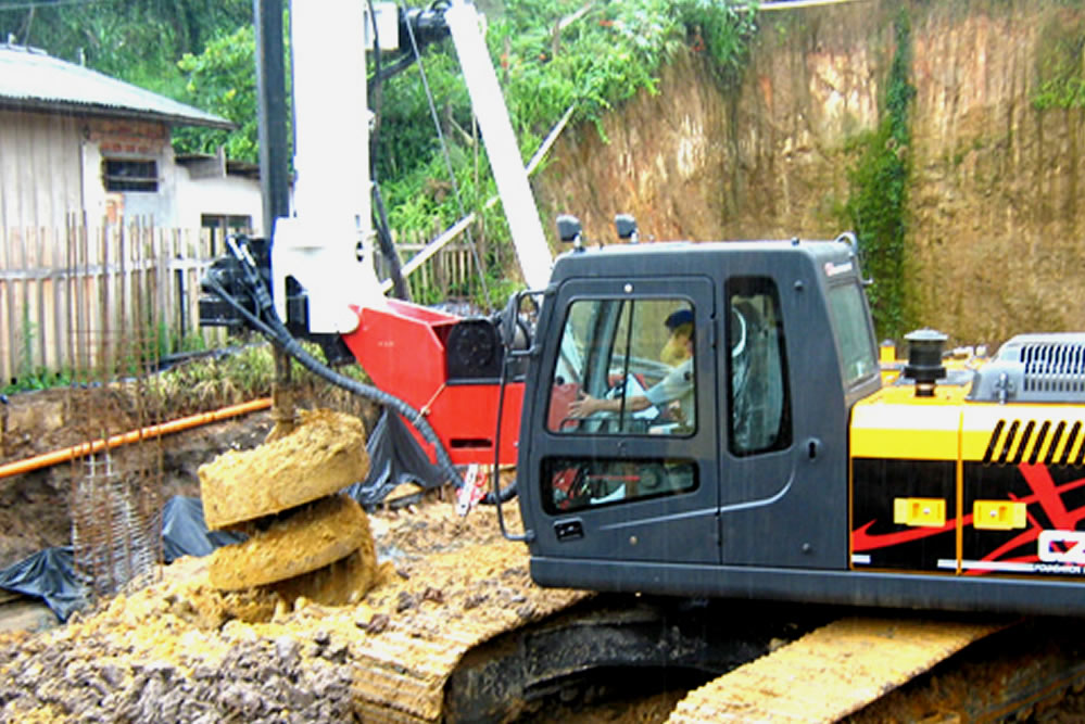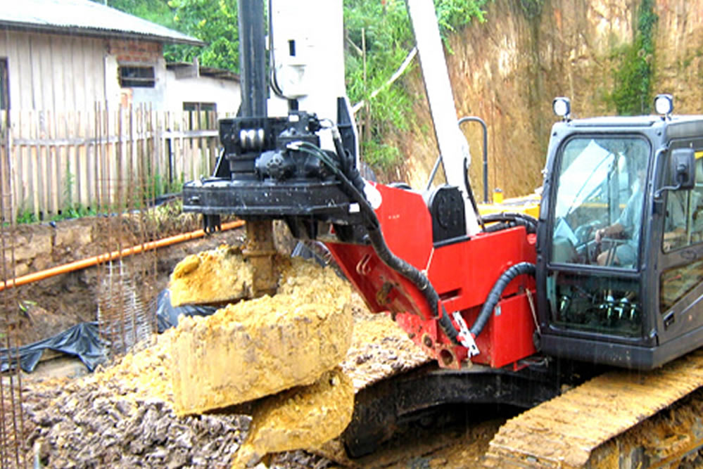 Este equipamento está acoplado a um chassi de escavadeira propiciando melhor mobilização dentro do canteiro de obras. A profundidade máxima de perfuração é de 25 metros com diâmetros que variam de 25 atá 180 cm de diâmetro.