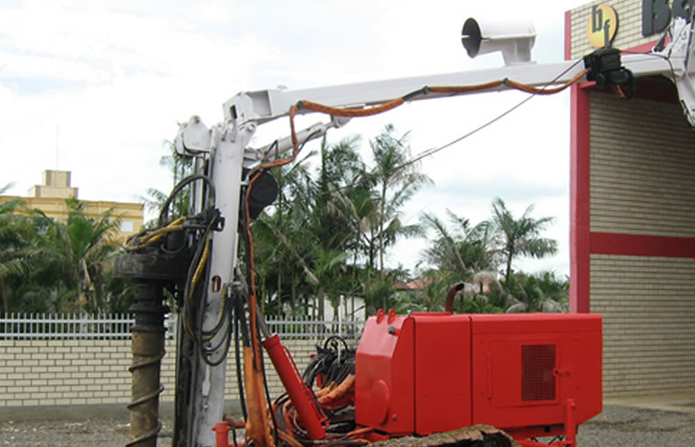 A Perfuratriz MC140 é um equipamento sobre esteiras de pequeno porte e de fácil movimentação em terrenos apertados e de dificil acesso. Seu transporte é feito por um caminhão plataforma, facilitando sua mobilidade no centro das cidades.